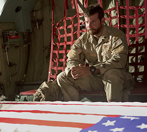 Bradley Cooper as Chris Kyle and DGA nominated director Clint Eastwood on the set of American Sniper.